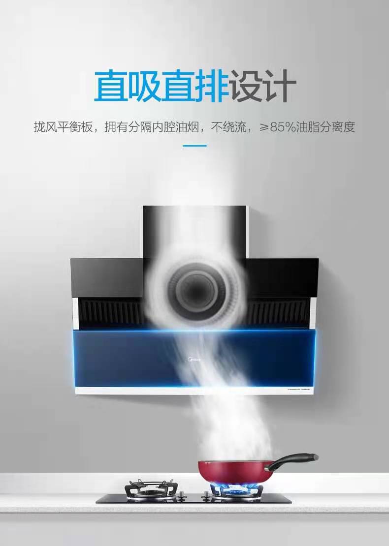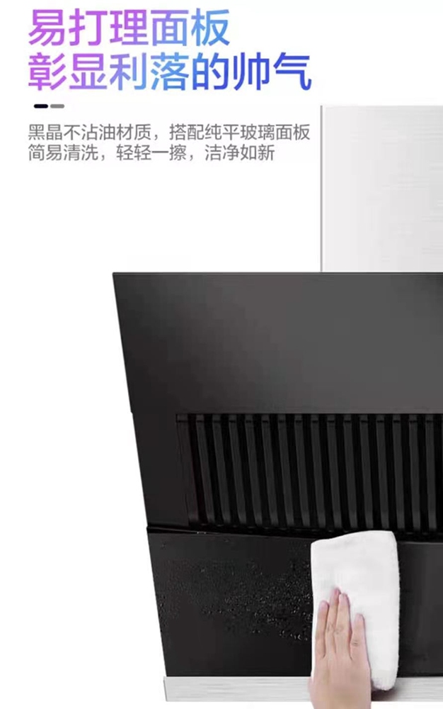 1、下置式单电机设计,三速档位。 2、大风量,爆炒最大可达21m³/min,有效提高吸烟效果 3、全触摸+体感操控,氛围灯效果彰显时尚科技。 4、玻璃面板,表面清洁无死角, “鹰翼”进风口设计,能快速吸走油烟