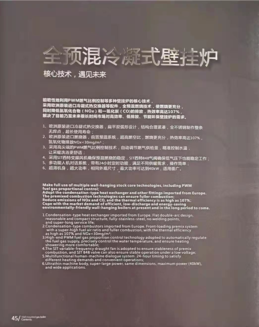 ●冷凝式热交换器,无焊接点,无泄漏点,超长使用寿命;