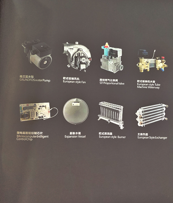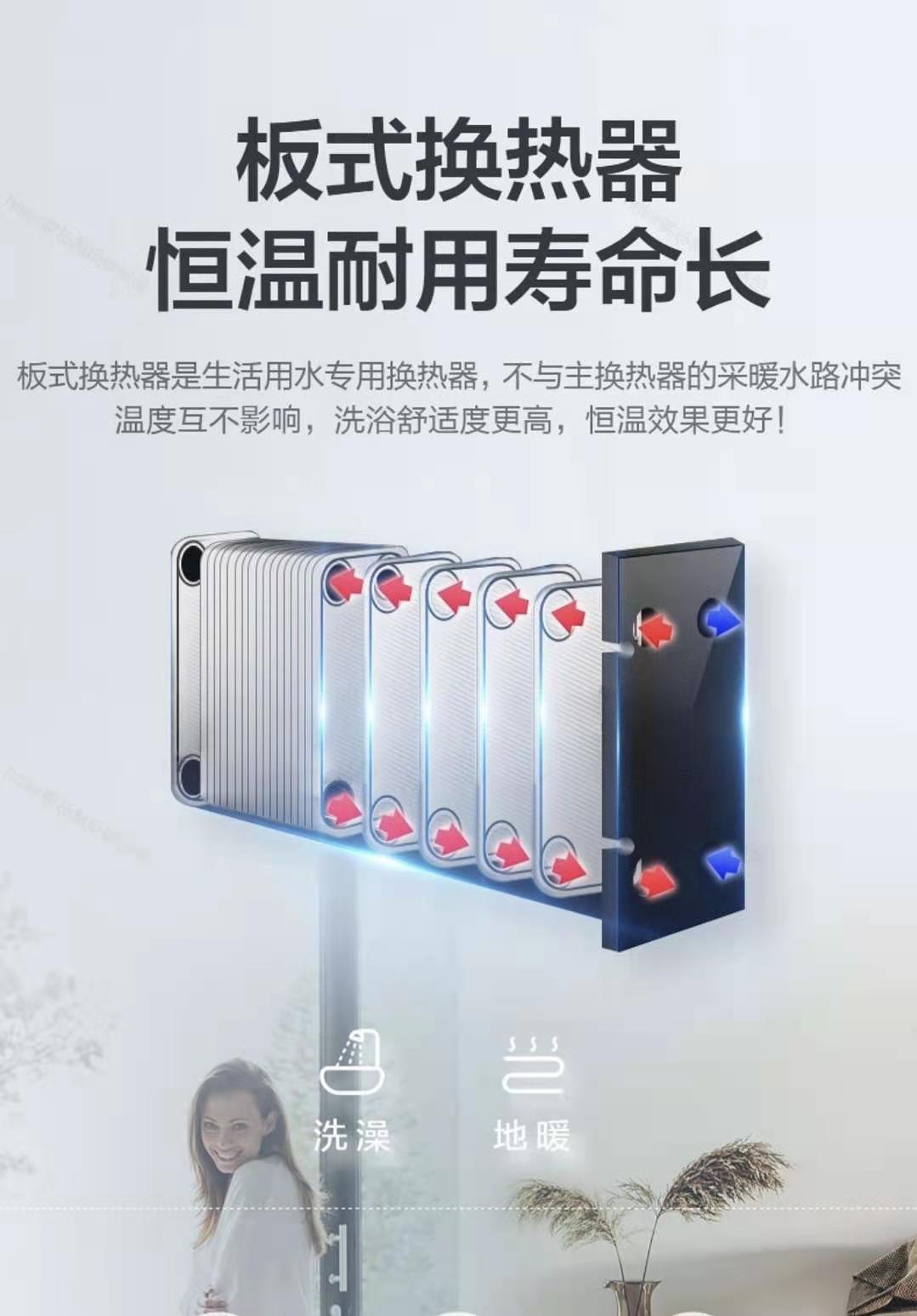 ●节能型热交换器,采暖炉热效率达到90%以上;