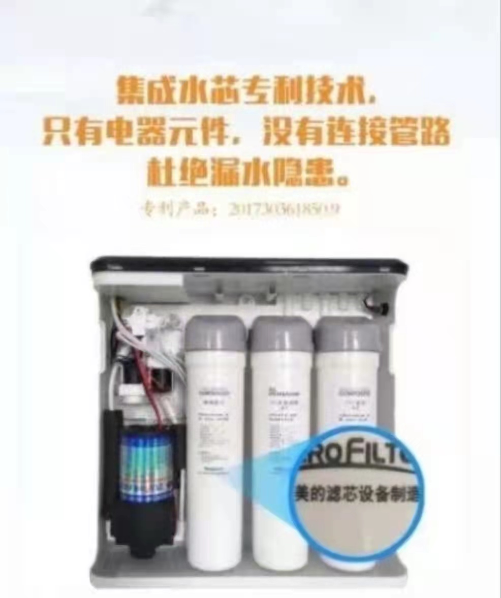小身材 大能力 纤薄机身|RO反渗透|3合1滤芯 75 加仑/采用美的滤芯 ●插扣式滤芯,三芯5级过滤 ●配置3.2加仑储水压力罐 ●304不锈钢双水龙头 ●机身尺寸mm : 380X130X380