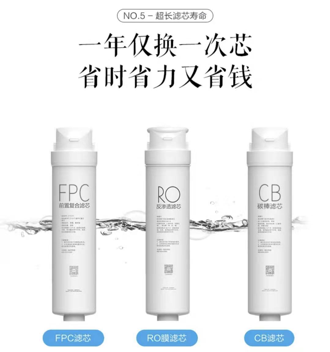 小身材 大能力 纤薄机身|RO反渗透|3合1滤芯 75 加仑/采用美的滤芯 ●插扣式滤芯,三芯5级过滤 ●配置3.2加仑储水压力罐 ●304不锈钢双水龙头 ●机身尺寸mm : 380X130X380