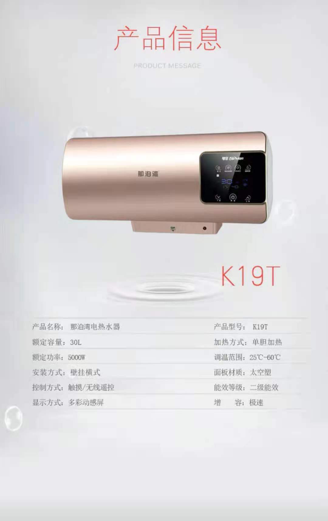产品名称:那泊湾电热水器 NBW-K19T速热更新时间:2023-08-17 16:33:45 |